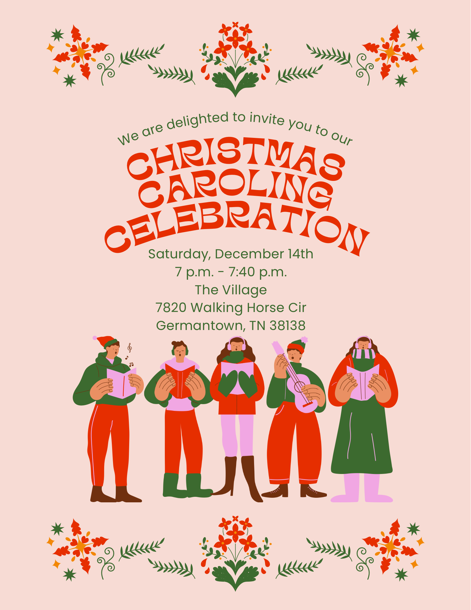 Come spread some Christmas cheer! On Sunday, December 14th, from 7-7:45 PM, we will have our annual, church-wide caroling at The Village assisted living community.
